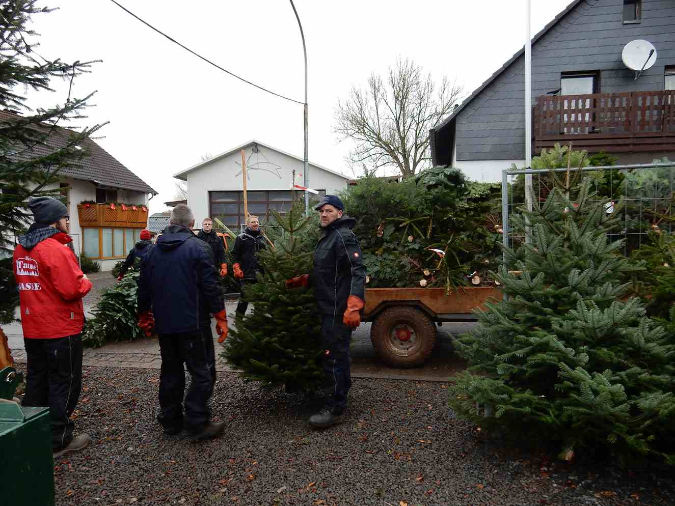 Der Hausverkauf beginnt bei uns traditionell ab dem 2. Advent und geht bis zum 23. Dezember. Die Bäume werden täglich frisch geschlagen und können, mit etwas Glück, direkt vom Anhänger gekauft werden.
